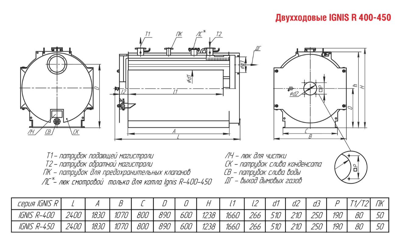 Технические характеристики водогрейного двухходового котла ARCUS IGNIS R-400