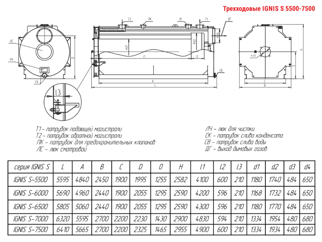 Технические характеристики водогрейного трёхходового котла ARCUS IGNIS S-6000