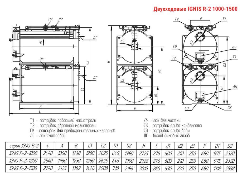 Технические характеристики модульного водогрейного трёхходового котла ARCUS IGNIS R-2-1500